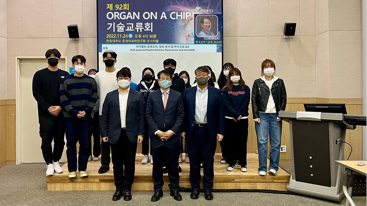 이번 기술교류회는 KAIST 이건재 교수를 연사로 모시고 '자가발전 유연소자: 압전 센서 및 마이크로 LED' 를 주제로 강연이 진행되었다.