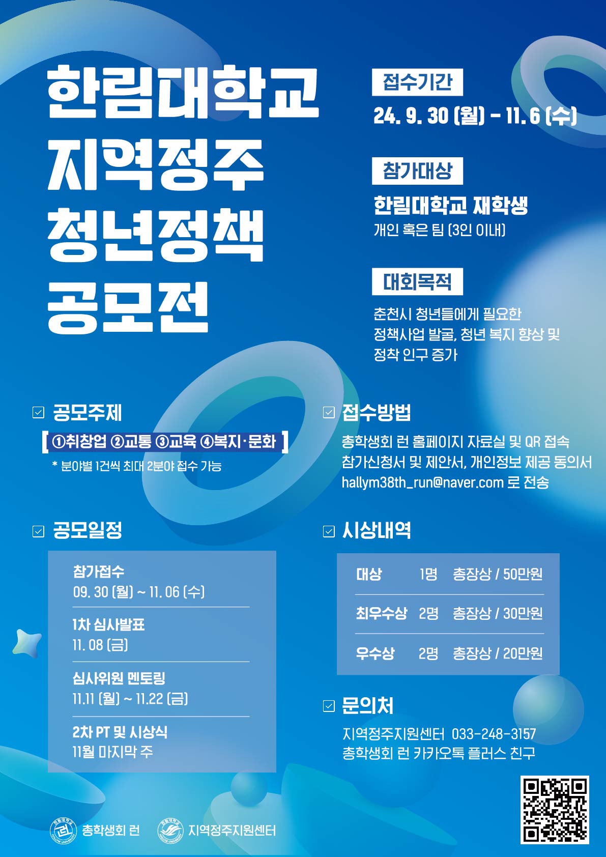 [2024 한림대학교 지역정주 청년정책 공모전] 접수 안내드립니다.